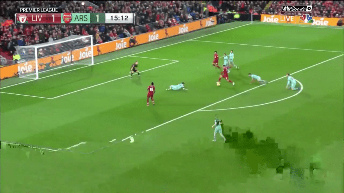 Liverpool up 4-1 at half and finished the game 5-1 because Arsenal’s defense has the balance of a newborn baby deer.