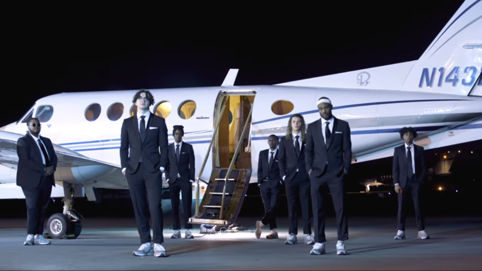 The kid from Kentucky keeps the slappers coming. I don’t know why they all have on black suits and grey tennis shoes, though.