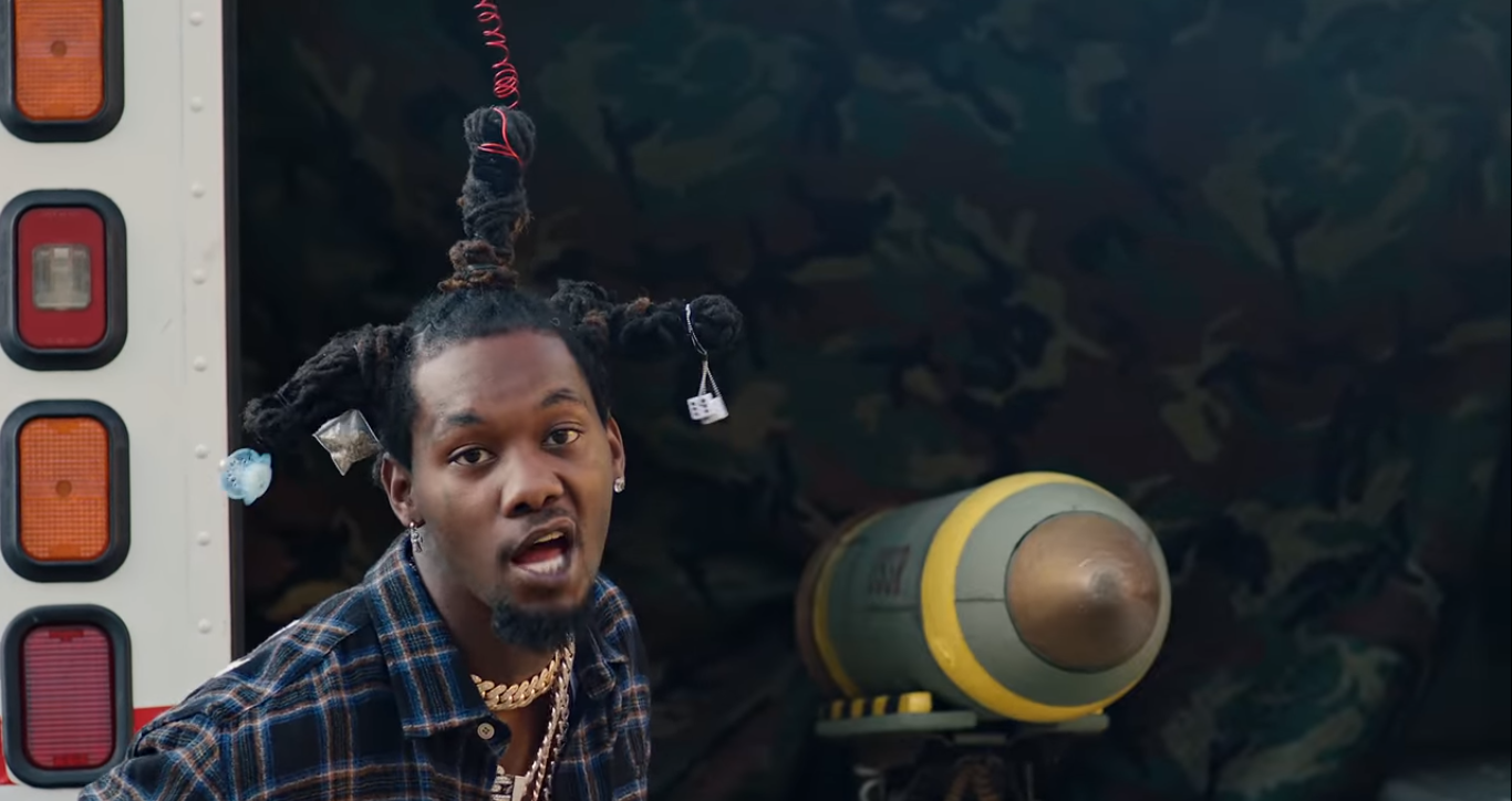And if you’re also getting weird, mid 1990’s nostalgia from seeing Offset act a fool with crazy hair and a military grade missile, that’s because he is parodying a character from the classic movie Don’t Be a Menace to South Central While Drinking Your Juice in the Hood, which is a parody in itself. The character, played by Marlon Wayans, is aptly named Loc Dog and is fondly remembered for his “Do we have a problem?” scene.